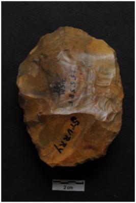 | Description / विवरण | Scraper, oval shape, retouches on working edge. |