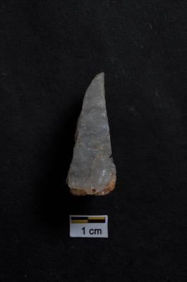 | Description / विवरण | Pointed Flake, cortex visible on striking platform. |