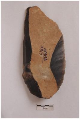 | Description / विवरण | Side scraper, retouches on convex working edges. |