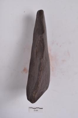 | Description / विवरण | A flake tool probably a borer with triangular in shape, on the dorsal side it has a mid ridge with some retouches and prominent bulb on the ventral side. |