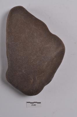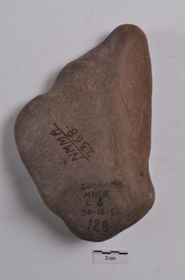 | Description / विवरण | Triangular shape stone object from the dorsal side probably two flakes has been taken out. From the ventral side it has a diffused bulb. |