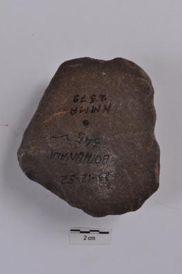| Description / विवरण | A triangular shape stone object. From the dorsal side there has been two flake scars are present and a prominent bulb is present. |