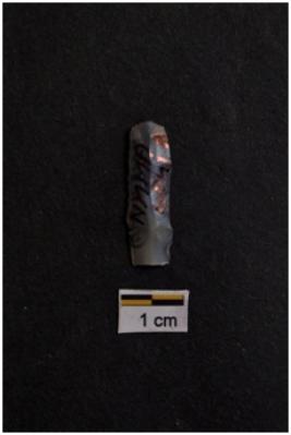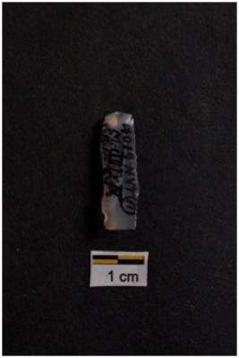 | Description / विवरण | Blade, parallel sided, prominent bulb with striking platform at proximal end, a ridge on dorsal surface, use-ware marks on both working edges. |