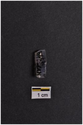 | Description / विवरण | Blade, parallel sided, a ridge on dorsal surface, use-ware marks on both working edges. |
