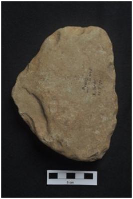 | Description / विवरण | Scraper, triangular shape, retouches on working edge. |