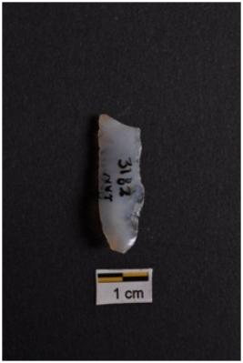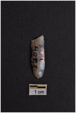 | Description / विवरण | Blade, parallel sided, prominent bulb with striking platform at proximal end, use-ware marks on both working edges. |