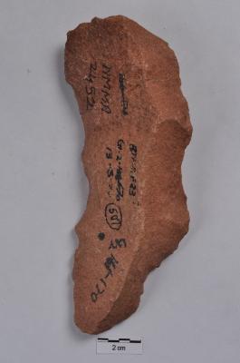 | Description / विवरण | Double sided scraper, one convex and another concave working edges, diffused bulb with striking platform at proximal end, a ridge on dorsal surface. |