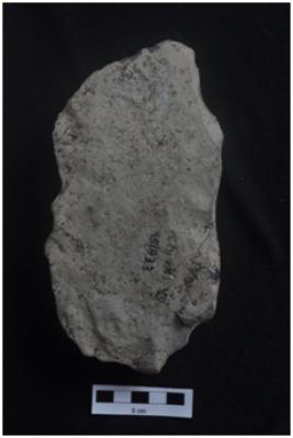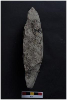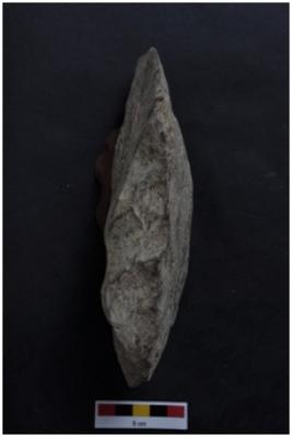| Description / विवरण | Scraper, long body, flake scars on both surfaces. |