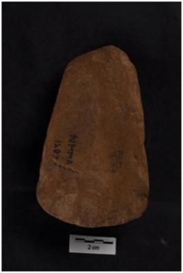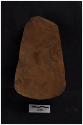 | Description / विवरण | Celt, convex working edge, semicircular butt end. |