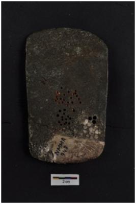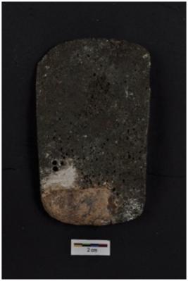 | Description / विवरण | Copper Axe with square butt end and convex working edge, weathered surface. |