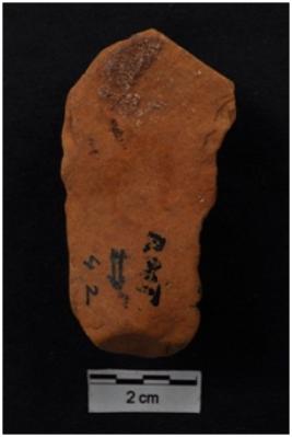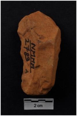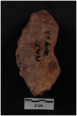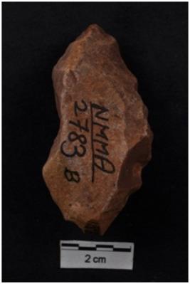 | Description / विवरण | A Blade, prominent bulb with striking platform at proximal end, two ridges on dorsal surface. B Scraper, retouches on convex working edge. |