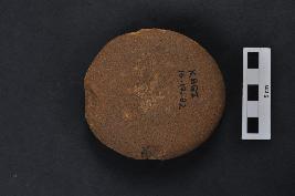 | Description / विवरण | Muller, circular shape, with partly chipped off surface. |