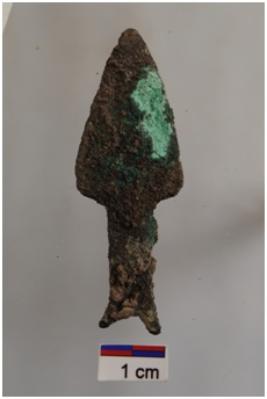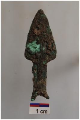 | Description / विवरण | A copper arrow head,leaf shape, tanged with socket. |