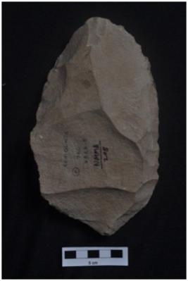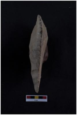 | Description / विवरण | Side Scraper, oval shape, retouches along the working edge. |
