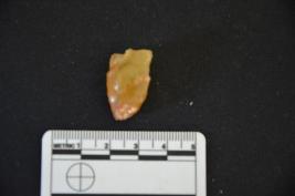 | Description / विवरण | A heated chalcedony fluted and crested guiding ridge core. It has a platform with blade scars and crested guiding ridge. |