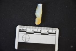 | Description / विवरण | A chalcedony crested guiding ridge blade with bulb and use mark on both the edges. |