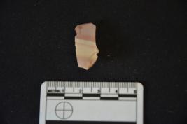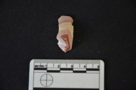 | Description / विवरण | A chert utilized flake with bulb and use marks on both the edges. |