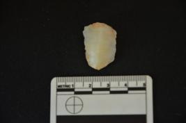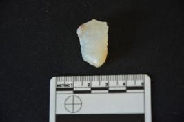 | Description / विवरण | A chalcedony utilized flake with bulb and use mark on both the edges. |