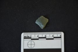 | Description / विवरण | A Moss Agate utilized flake with bulb and used mark on one edge. |
