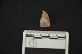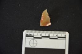 | Description / विवरण | A chalcedony heated point with retouch near the pointed tip. It is a rough square. |