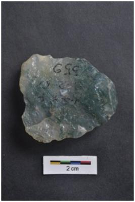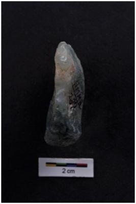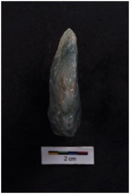 | Description / विवरण | End Scraper, bulb with striking platform visible, retouches on working edge. |