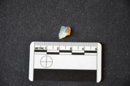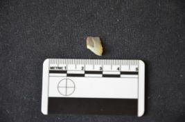 | Description / विवरण | Chalcedony utilized flake has flake scars on dorsal side, striking platform, bulb on ventral side and use-wear marks on working edge. |