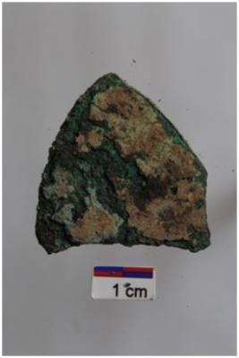 | Description / विवरण | A copper blade, triangular outline shape made of copper sheet,its look like axe shape, heavily rusted. |