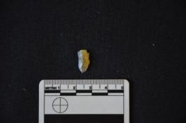| Description / विवरण | Chalcedony blade fragment has two ridges on dorsal side, broken from proximal end, use-wear marks on one cutting edge, trapezoidal cross-section and raw-material given heat treatment. |