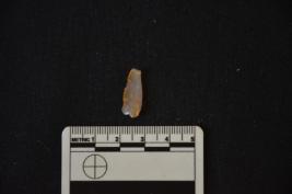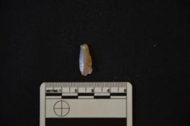 | Description / विवरण | Chalcedony blade heated has a ridge on dorsal side, striking platform, bulb on ventral side, partly broken from distal end and use-wear marks on edges. |
