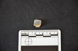 | Description / विवरण | An agate scraper on core has blade scars on surface, retouches and use-wear marks on working edges. |