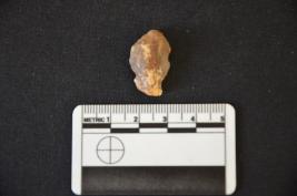 | Description / विवरण | Chert utilized flake has a ridge on dorsal side, striking platform, diffused bulb on ventral side and use-wear marks on working edge. |