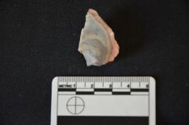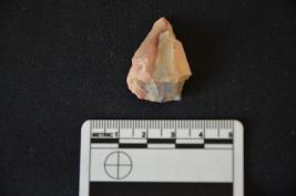 | Description / विवरण | A chert utilized flake with bulb and one edge is with use mark. |