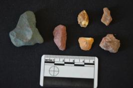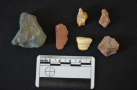 | Description / विवरण | Chert utilized flake has flake scars on dorsal side, striking platform, bulb on ventral side and use-wear marks on working edge. |