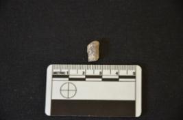 | Description / विवरण | Fragment of Moss Agate point has ridge on dorsal side, striking platform, bulb on ventral side, broken from distal end, triangular cross-section and use-wear marks on cutting edge. |