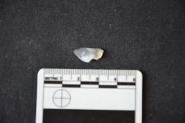| Description / विवरण | Chalcedony utilized flake has flake scars on dorsal side, striking platform, bulb on ventral side and use-wear marks on working edge. |