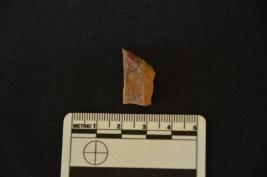 | Description / विवरण | A chert utilized flake with platform and use mark on both the edges. |