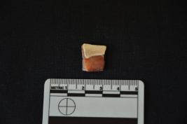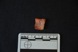 | Description / विवरण | A chalcedony utilized flake with use mark on one edge. |