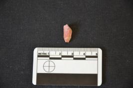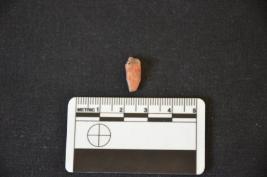 | Description / विवरण | Chert blade has a midridge on dorsal side, striking platform use-wear marks on edges and triangular cross-section. |