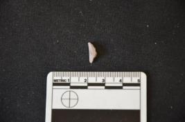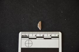 | Description / विवरण | A chert lunate has a ridge on dorsal side, striking platform and backing along one edge. |