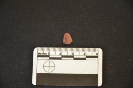 | Description / विवरण | Fragment of chert blade has a midridge on dorsal side, broken from distal end, striking platform, diffused bulb on ventral side, use-wear marks on cutting edges and triangular cross-section. |