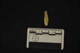| Description / विवरण | Chalcedony blade fragment has a midridge on dorsal side, striking platform, bulb on ventral side and use-wear marks on cutting edges. |