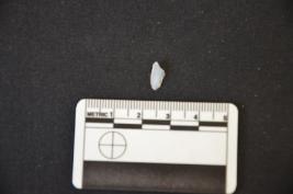 | Description / विवरण | Fragment of chalcedony blade has a midridge on dorsal side, striking platform, broken from distal end, triangular cross-section, retouches and use-wear marks on cutting edges. |