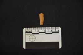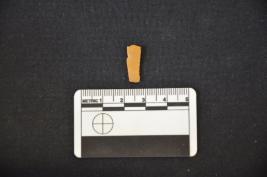 | Description / विवरण | Chalcedony blade fragment has three ridges on dorsal side, striking platform, bulb on ventral side, broken from distal end, trapezoidal cross-section and use-wear marks on cutting edges. |