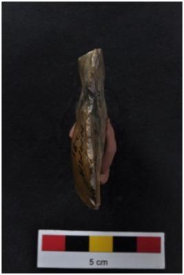 | Description / विवरण | Side Scraper, end struck, prominent bulb, retouches on working edge. |