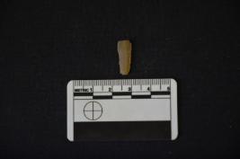 | Description / विवरण | Chalcedony blade fragment has a midridge on dorsal side, striking platform, bulb on ventral side, broken from distal end, use-wear marks on cutting edges and triangular cross-section. |