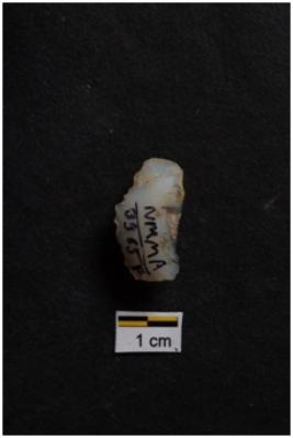 | Description / विवरण | Scraper, prominent bulb with striking platform at proximal end, retouches on convex working edge. |