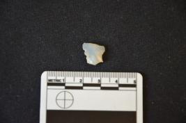 | Description / विवरण | A chalcedony utilized flake with bulb and use mark on both the edges. |