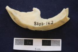 | Description / विवरण | Fragment of moss agate blade has a mid ridge on dorsal side, broken from proximal end, pointed along at distal end, use-wear marks on cutting edges and triangular cross-section. |