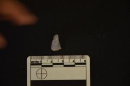 | Description / विवरण | Chalcedony point fragment has crested guided ridge on dorsal side, striking platform, broken from distal end, triangular cross-section and irregular retouches on one cutting edge. |