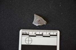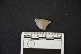 | Description / विवरण | Chert utilized flake has flake scars on dorsal side, striking platform, bulb on ventral side and use wear marks on working edge. |